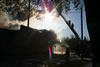 water shooting up & down at fire |